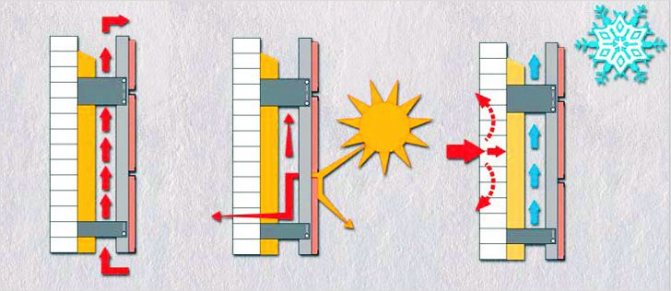 От дадената информация следва известно логическо противоречие. Но има напълно разбираемо и просто решение: за да се осигури оптимална хидроизолация и паропропускливост, защитното фасадно покритие трябва да бъде фиксирано на определено разстояние от повърхността на стената, като същевременно се осигурява висококачествена вентилация на процепа. Именно тази конструкция обикновено се нарича вентилирана фасада.