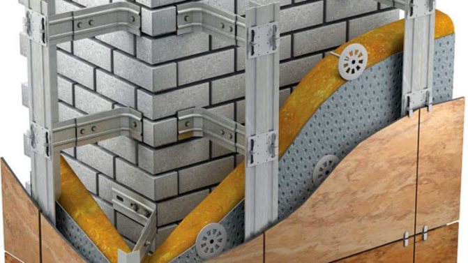 Технологията на монтаж и изолация на вентилационни фасади е както следва: