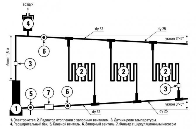 3. Свързването към мрежата се осъществява чрез медни жици, които не се обслужват. Тяхното напречно сечение се избира въз основа на текущото натоварване на системата. Има 2 основни схеми за свързване на електрически котли: