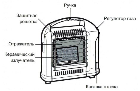 Устройството на най-обикновения газов керамичен инфрачервен нагревател за палатка.