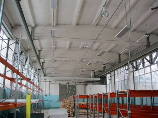 Индустриалните инфрачервени излъчватели се използват в помещения с височина на тавана повече от три метра: