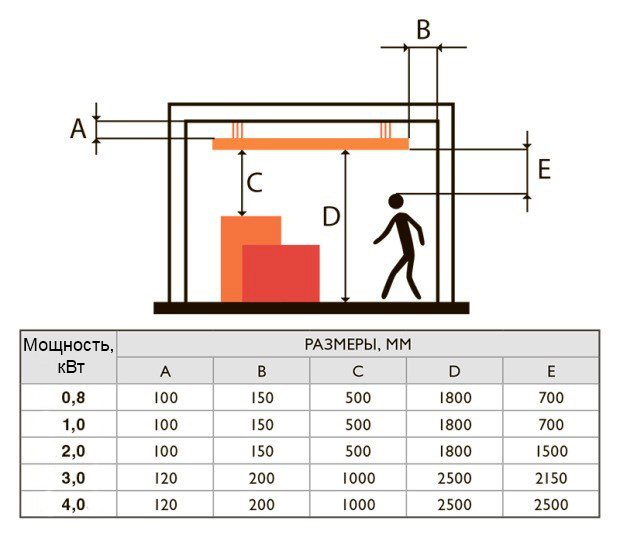 - правилният избор на нагреватели по дължина на вълната - моделите с къси вълни са фокусирани върху външната употреба. На закрито ефектът им води до вид изгаряния, главоболие и други неприятности. За отопление на помещенията трябва да се използват нагреватели с дълги вълни. (най-добрият вариант за човек);