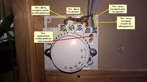 Устройството се свързва с термостат, който ще поддържа желаната температура. Това се прави чрез три терминала: земя, фаза и нула. Съответно захранващият кабел трябва да бъде трижилен. Като алтернатива можете да използвате PVA 3x1.5.