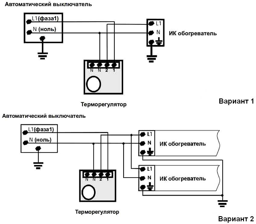 Схема на свързване на няколко нагревателя през термостат