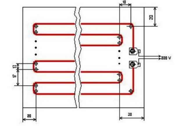 След това в отворите се вкарват метални нитове и се навиват около края на жичния материал. Основното нещо е да се изчисли проводникът, за да се поправи всичко правилно. Поправяме го с шайби, много е важно проводникът да не се отделя. Така се създава домашен нагревател.