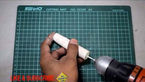 В краищата на гипсовата заготовка правим отвори за закрепване към тялото на кутията.