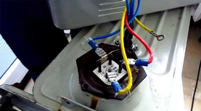Остава само да свържете захранващите проводници на нагревателния елемент според маркировката и да затворите капака, като го фиксирате с 4 винта. Това завършва работата по подмяна на нагревателния елемент. Но все още има финален тест за ефективност.