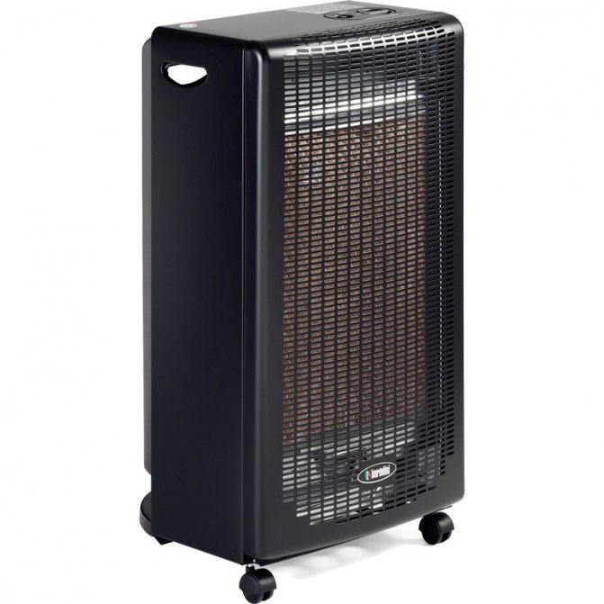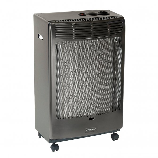 - газовите нагреватели са най-често срещаните, но далеч не единствената възможност. Той се основава на процеса на изгаряне на пропан-бутанова смес. Тази опция е идеална за отопление на селски къщи или гаражи. Най-мощните устройства могат лесно да отопляват цели строителни обекти или складове. Максималната мощност на устройствата в продажба е 4900 W. И въпреки че по време на работа на устройството не се получава отделяне на вредни примеси и продукти от горенето, струва си да се използват такива устройства със специално внимание в помещения, чиято площ е по-малка от 20 m2;