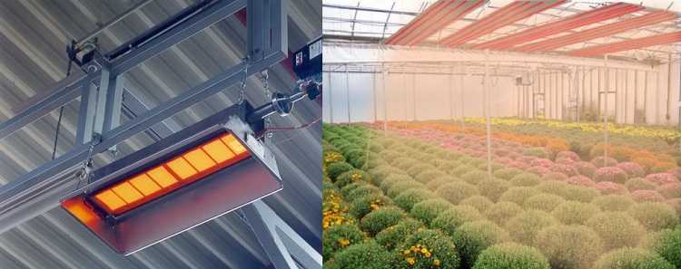 - Електрическото отопление на индустриалните оранжерии изисква сериозни разходи за поддръжка, устройствата изсушават въздуха. За да се намалят разходите и да се поддържа нормално ниво на влажност, инфрачервените нагреватели им позволяват да пренасят топлина не във въздуха, а в растенията и предметите.