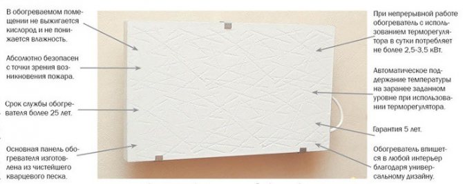 - Икономичен разход на енергия - кварцовото тяло бързо се натрупва и бавно отделя топлина, поради което разходът на енергия се намалява няколко пъти.