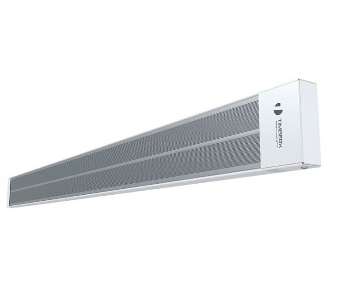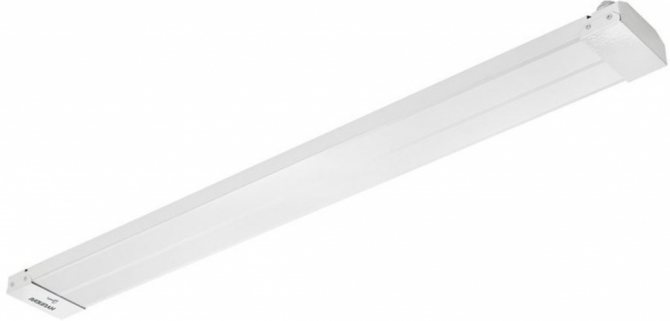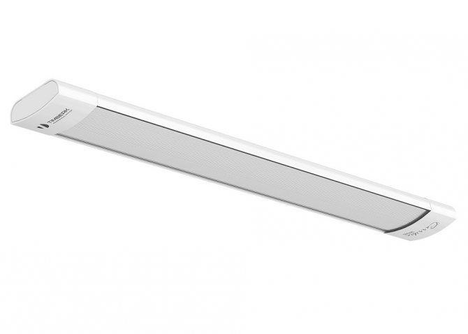 Доста добри инфрачервени устройства, чиято мощност варира от 0,7 до 3 kW. Според производителя те ще продължат поне седем години. Нагревателите са затворени в сиви неутрални кутии, така че те добре се хармонизират с бели тавани. Те обаче могат да бъдат окачени в почти всеки интериор, с изключение на дизайнерския. Тези устройства принадлежат на тавана, но нищо не им пречи да бъдат монтирани на стената. Между другото, монтажните скоби са включени в комплекта.