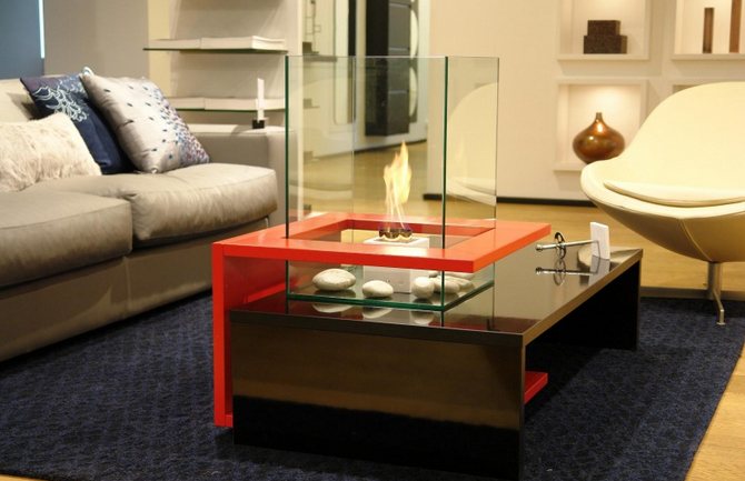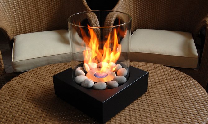 Малка био камина на специална маса