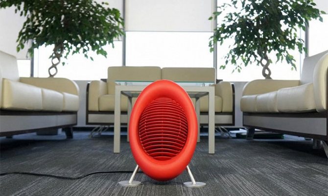 Уредът генерира топлина, която се разпределя из стаята с помощта на вентилатор.Нагревателят се състои от три ключови елемента - корпус, нагревателен елемент и вентилатор. Изберете модел от метална обвивка, която ще предпази от възможен пожар.