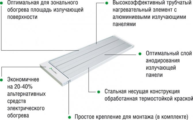 Напротив, инфрачервеният нагревател е лишен от този недостатък.Нагревателният му елемент има много по-висока работна температура в сравнение с температурата на околната среда, от която режимът на работа на устройството практически няма да зависи. Това означава, че IR нагревателят може да работи с пълна мощност.