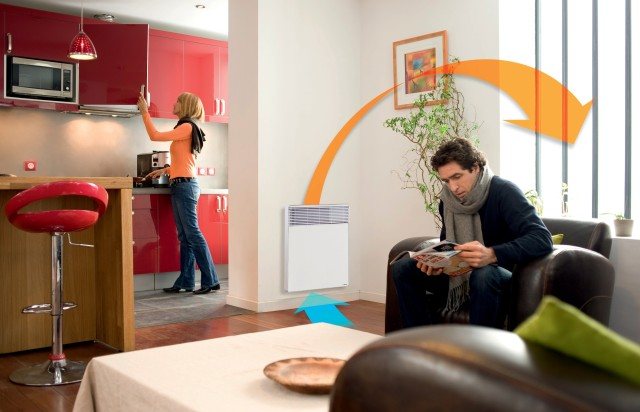 Въздухът попада вътре в устройствата през отворите в долната част, нагрява се с помощта на нагревателен елемент, а изходът се осигурява от наличието на горни прорези. Днес има електрически конвектори с мощност от 0,25 до 2,5 kW.
