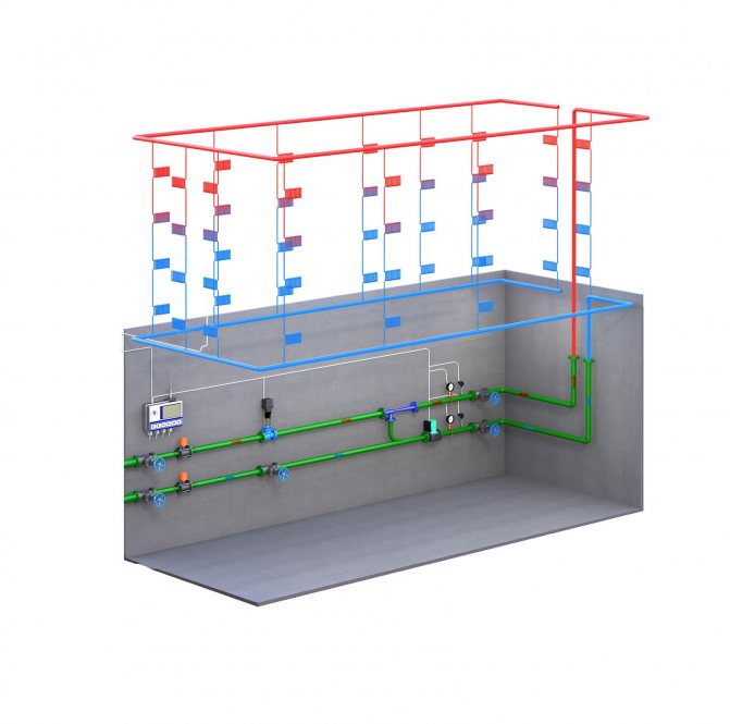- Инсталиран на стена в стая и представлява цял комплекс от устройства: