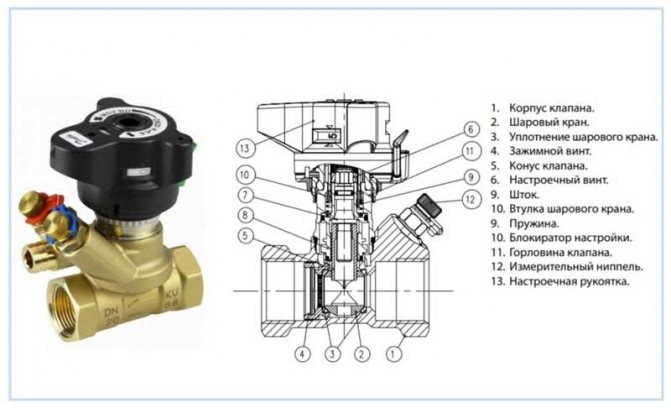 В тази ситуация на помощ на потребителя ще дойде балансиращ клапан, който контролира отоплението на помещението, като създава пречка за потока на течността. По време на работата на такова устройство обемът на подаването на охлаждащата течност намалява.