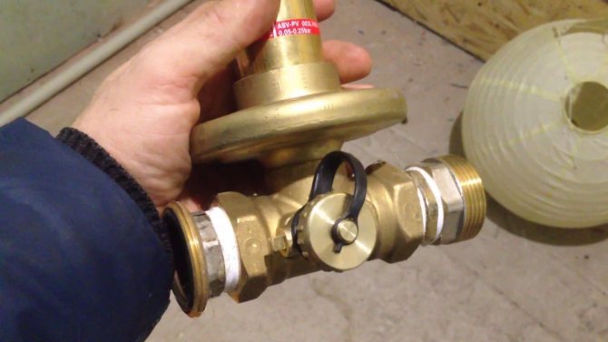 Когато инсталирате клапана, поставете го по посока на стрелката върху тялото, което показва посоката на движение на течността, за да се борите с турбулентността, която влияе на точността на настройките. Изберете прави участъци от тръбопровода с дължина 5 диаметра на устройството и точката му на местоположение и два диаметъра след клапана. Оборудването е инсталирано в обратния клон на системата, водопроводният регулируем ключ е достатъчен за извършване на работата, инсталирането се извършва в следната последователност: