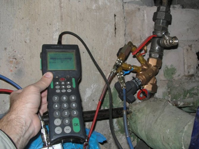 За определяне на обема на подаване на вода към всеки радиатор и съответно балансиране се използва електронен контактен термометър, с който се измерва температурата на всички отоплителни радиатори. Средният обем на доставка за всеки нагревател се определя чрез разделяне на общия брой на нагревателните елементи.Най-големият поток топла вода трябва да отиде до най-отдалечения радиатор, по-малко количество до елемента, най-близо до котела. Когато извършвате работа по настройка с ръчно механично устройство, постъпете както следва: