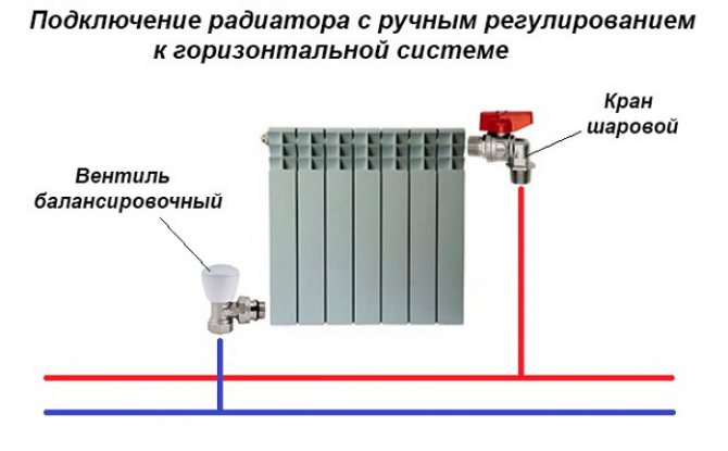 Ако батериите не са оборудвани с термостатен клапан, тогава консумацията на вода за всеки отделен потребител ще бъде постоянна. За да регулирате подаването на течност в системата, можете да използвате ръчен балансьор, който е инсталиран на връщащата линия на кръстовището на тръбата с общата линия.
