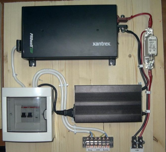 - Към тези терминали свържете инвертора, и ние оборудваме входа на захранването с проводник с щепсел за свързване към мрежата.