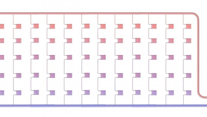 - Може да се прилага от всяко място в сградата, което прави системата гъвкава. Например, можете да започнете да пускате тръби от най-студената част от него (северната част).