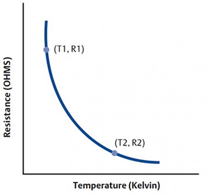 Където A, B, C - това са константи (осигурени от условията за изчисление), R - съпротивление в ома, т - температура в Келвин. Можете лесно да изчислите промяната в температурата от промяна в съпротивлението или обратно.