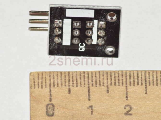 Размер на модула 24 х 15 х 10 мм, тегло 1,3 г. За свързване се използва трипинов конектор. Централен контакт - захранване + 5V, контакт "-" - общ, контакт "S" - информационен.