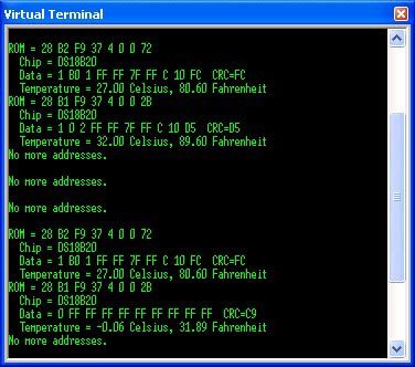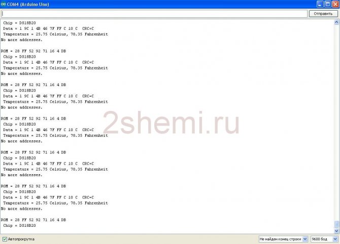 Фигура 6 - резултатът от работата с библиотеката OneWire.h