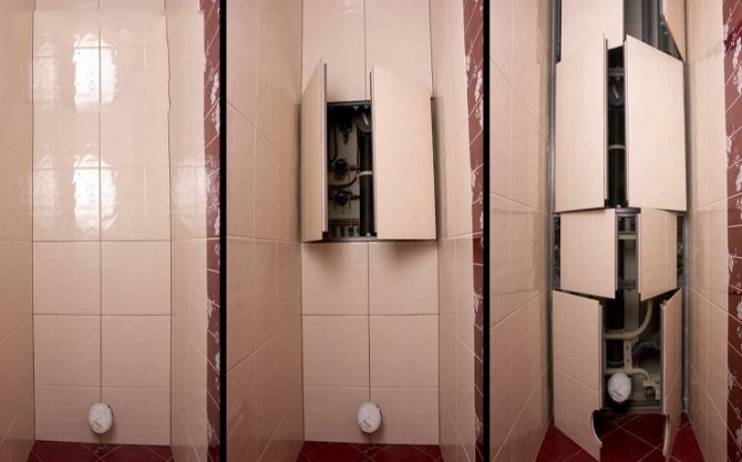 При издигането е необходимо да се вземе предвид, че рано или късно кутията ще трябва да бъде демонтирана, така че не правете монолитна конструкция. Ако изберете този метод на маскиране, оставете възможността за достъп до тръбите. Направете незабележима врата или покрийте тръбите с решетъчен екран, който може да бъде премахнат за минути. Това обаче няма да помогне за запазването на конструкцията, ако е необходимо заваряване за ремонт на тръбите.