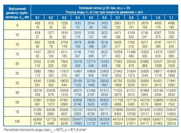 Почти е невъзможно да определите диаметъра на тръбите сами поради сложността на изчисленията, следователно, за да определите параметъра, можете да използвате таблицата по-долу или метода на изчисление.