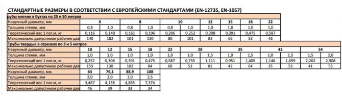 Разбира се, посочените размери са характерни само за местни продукти, но медната тръба KME (добре позната търговска марка от Германия) може да има малко по-различни размери. Всъщност Европейският съюз има свои собствени стандарти за качество.
