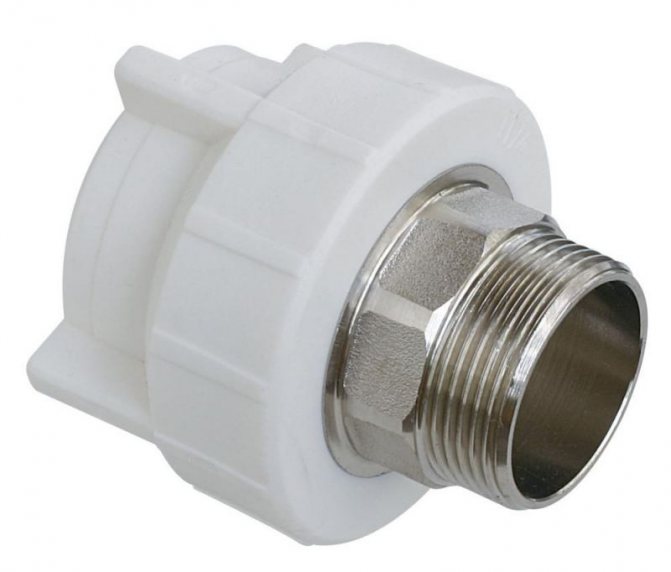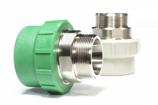 За свързване на спирателни кранове или свързване на тръбопровода към мрежата е необходима надеждна метална винтова връзка. Следователно всички преходни фитинги трябва да имат или резба, или вътрешна резба в единия край. Но за да свържете тръбопровода към тръбопровода или фитингите, разклонителна тръба или резба не са достатъчни - необходим е и тромав чистач или американска гайка. Ето защо, наскоро, върху фитингите, те започнаха да комбинират разклонителната тръба с американската съединителна гайка, което прави възможно лесно и надеждно завиване на тръбопровода към всякакви резбови или резбови спирателни клапани.