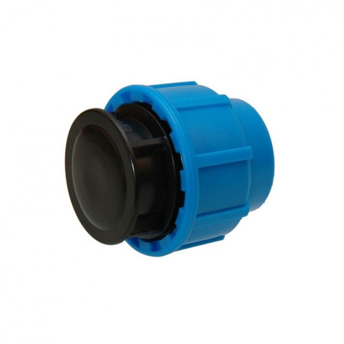 Това са капачки, които надеждно и херметично затварят тръбната секция. Необходимостта от инсталиране на щепсели възниква в два случая: ако има нужда от време на време да се източва вода от системата и не искате да инсталирате кран, или ако системата все още ще расте, но тръбопроводът трябва да бъде временно включен. Тапите за пластмаса са два вида: неотстраними и подвижни. Неразделими - просто запоени или залепени към тръбопровода. Разглобяем - завинтва се и може да се развие, ако е необходимо.