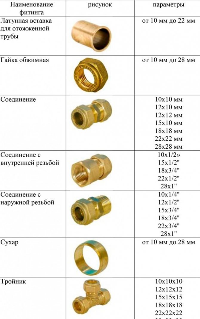 Такива разглобяеми фитинги се предлагат под формата на тройници и кръстове, различни адаптери, те са необходими за фиксиране на няколко края на тръбите и, когато са правилно инсталирани, се характеризират с дълъг експлоатационен живот.