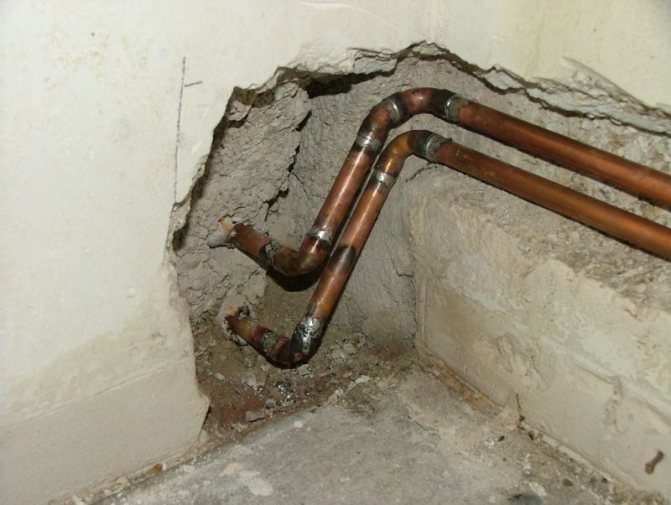Пластмасовите комуникации през стената трябва да се извършват през втулка, направена от стоманена тръба с по-голям диаметър.