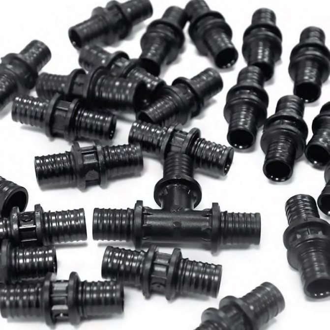Свързващите елементи осигуряват надеждна фиксация на тръбите един към друг, в сложна конфигурация те гарантират свързването на цялата конструкция.