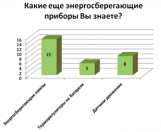 Оскъдно, вярно, но това е всичко, което можете да получите от електрическите уреди. Всички други мерки са свързани с рационалното използване на енергията. Например можете да се перете в студена вода. Сега се използват такива прахове, че кипенето в пишеща машина се използва само когато се отстранява котлен камък. Между другото, в студена вода, котлен камък не се утаява толкова върху частите на пералната машина. Също така е полезно да инсталирате датчици за движение в общ коридор, на стълбище, в двора на частна къща, с други думи, където не е необходимо постоянно осветление.