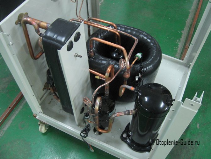Разгърнат изглед на китайска термопомпа за земни източници.