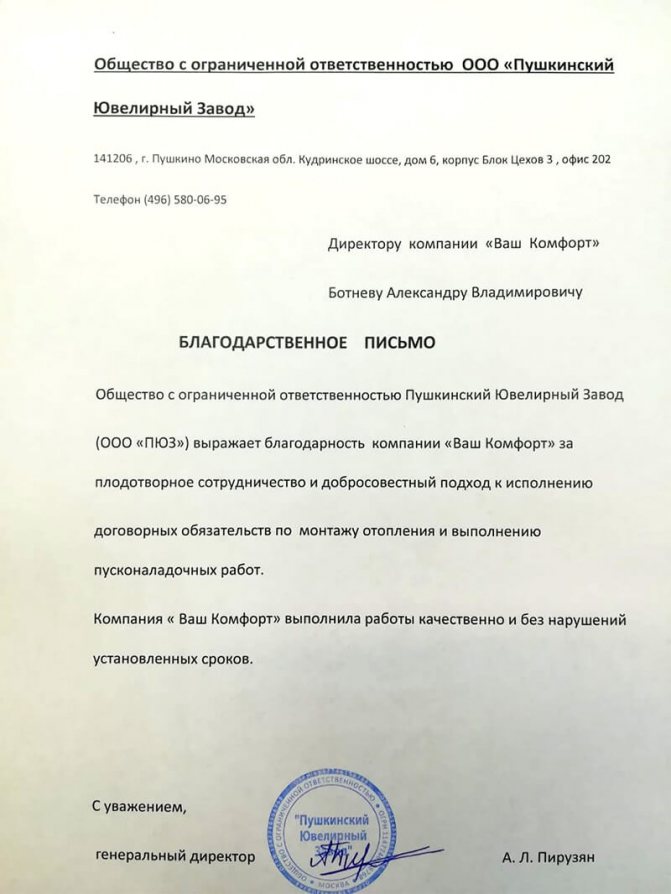 Обратна връзка от клиента: „Свързах се с VashComfort, беше необходимо да инсталирам отоплителна система в моята вила. Момчетата свършиха работата за два дни. Всичко ми хареса, много съм доволен. Препоръчвам. "