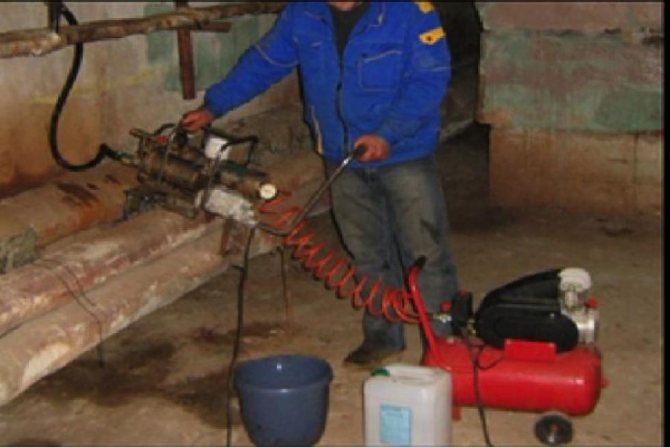 Добрият компресор с мощно и равномерно подаване на въздух доставя смес въздух-вода към тръбопроводите, която разхлабва и събаря отлаганията от котлен камък вътре в тръбите. Компресорът трябва да работи в равномерен импулсен режим, създавайки не просто постоянен въздушен поток, а серия от въздушни и водни тласъци. Точно така се образуват вихрите за разхлабване на измет.