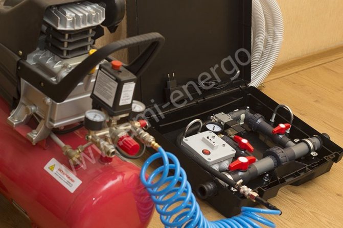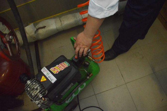 Въздухът се подава към отоплителната система от компресора, за да създаде мощен водно-въздушен поток с вихри. Това устройство трябва да показва налягане от 0,6 MPa на изхода. За да се предотврати проникването на вода от системата в приемника на компресора, на мястото, където е свързан към тръбопроводната система, е монтиран възвратен клапан.