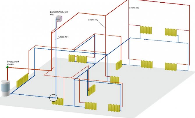 Напротив, обикновен дву- или 3-стаен апартамент с автономно отопление няма такова разнообразие от пръстени и клонове на системата;