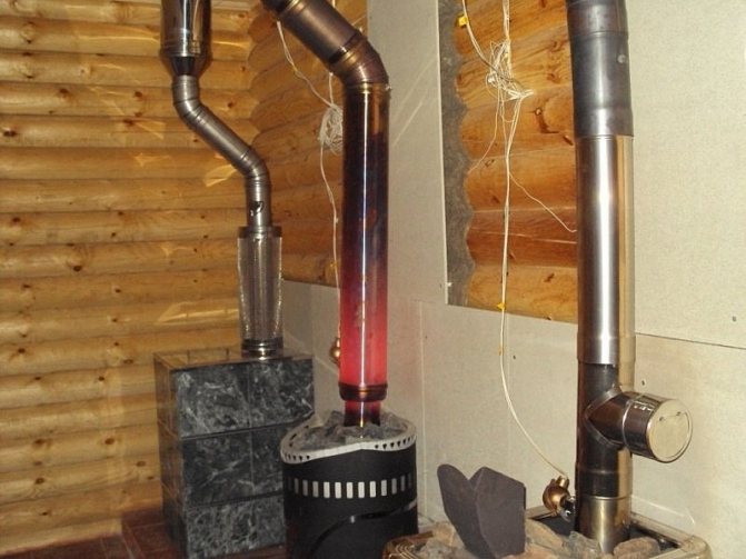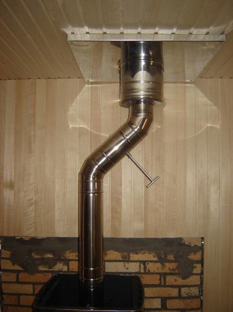 - Като правило вторият етаж на баните е оформен като стая за отдих. Също така, полагането на сандвич комин може да се извърши в частна къща. В такива случаи се прави преход от сандвич тръба към тръба с една стена. Това се прави така, че топлината от комина да се разпространява и да затопля помещенията. Преходът към едностенна тръба трябва да се извърши на височина 1 м от пода на втория етаж.