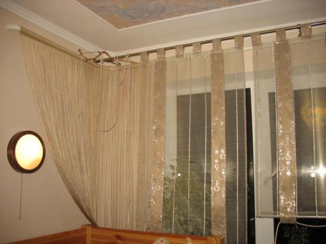 - За украса на тръби в апартамент можете да използвате драперия от платподобно на завесите. Това решение ще създаде определен чар във вашия апартамент.