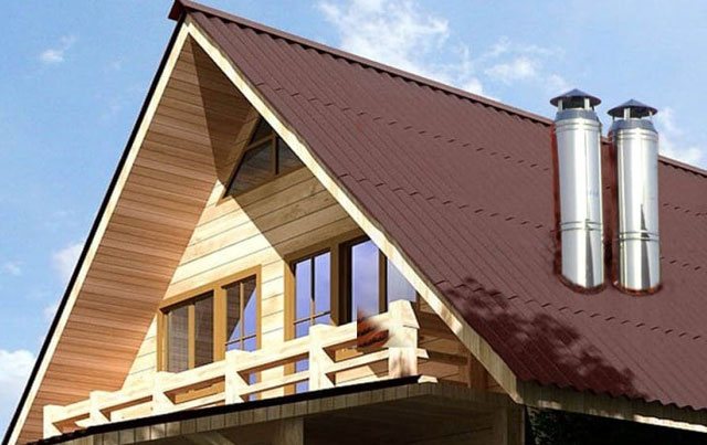 Всички частни къщи имат индивидуална отоплителна система. Дори ако това е котел, а не печка на дърва, той все още изисква газ и дим, генерирани от изгарянето на гориво, да бъдат отстранени от системата. Когато отоплителният котел е разположен в мазето на къщата, инструкциите за неговото функциониране позволяват извеждането на комина по външната стена.И тогава тя може да се разглежда като елемент на фасадата и нейният декор може да бъде произведен в съответствие с външната декорация на къщата. Ако в сградата има печка или камина, коминът преминава през пространството на помещението, в което се намират, и тавана. В този случай вътрешната украса на таванския покрив се извършва, като се вземе предвид съществуващия комин.