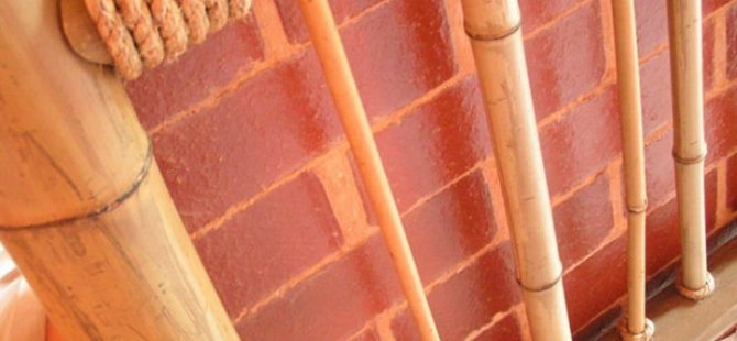 Освен това бамбукът се използва не само при декориране на стая, да речем, в японски стил... Изглежда добре в други интериорни опции... Основното е, че бамбукът се вписва добре в цялостния дизайн на стаята. И така, че щранговата тръба, рамкирана от бамбуков багажник, да не привлича много внимание, препоръчително е да украсите други елементи на стаята с този материал.