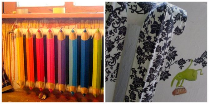 Отнася се до най-прости и популярни начини за украса на отоплителни тръби. Преди да го използвате, трябва да се погрижите за основата за боядисване, защото останалата или обелена стара боя може да развали идеята. Сешоар или нож за шпакловка ще помогнат за почистването на повърхността от предишното покритие.