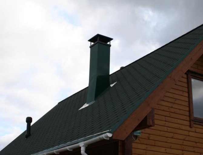 - Коминът на покрива може да бъде завършен със същия материал като самия покрив, например велпапе. В този случай за сравнително ниска цена можете да получите привлекателно изглеждаща тръба.