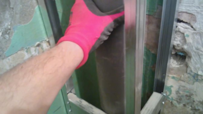 - U-образният профил се притиска към стената от двете страни.